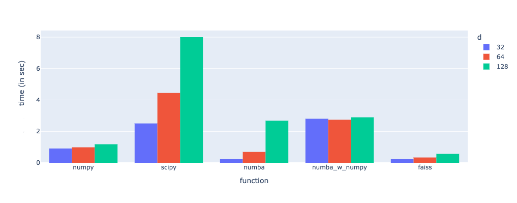 This explains why the time taken for d=128 by both the Numba implementation is almost the same.