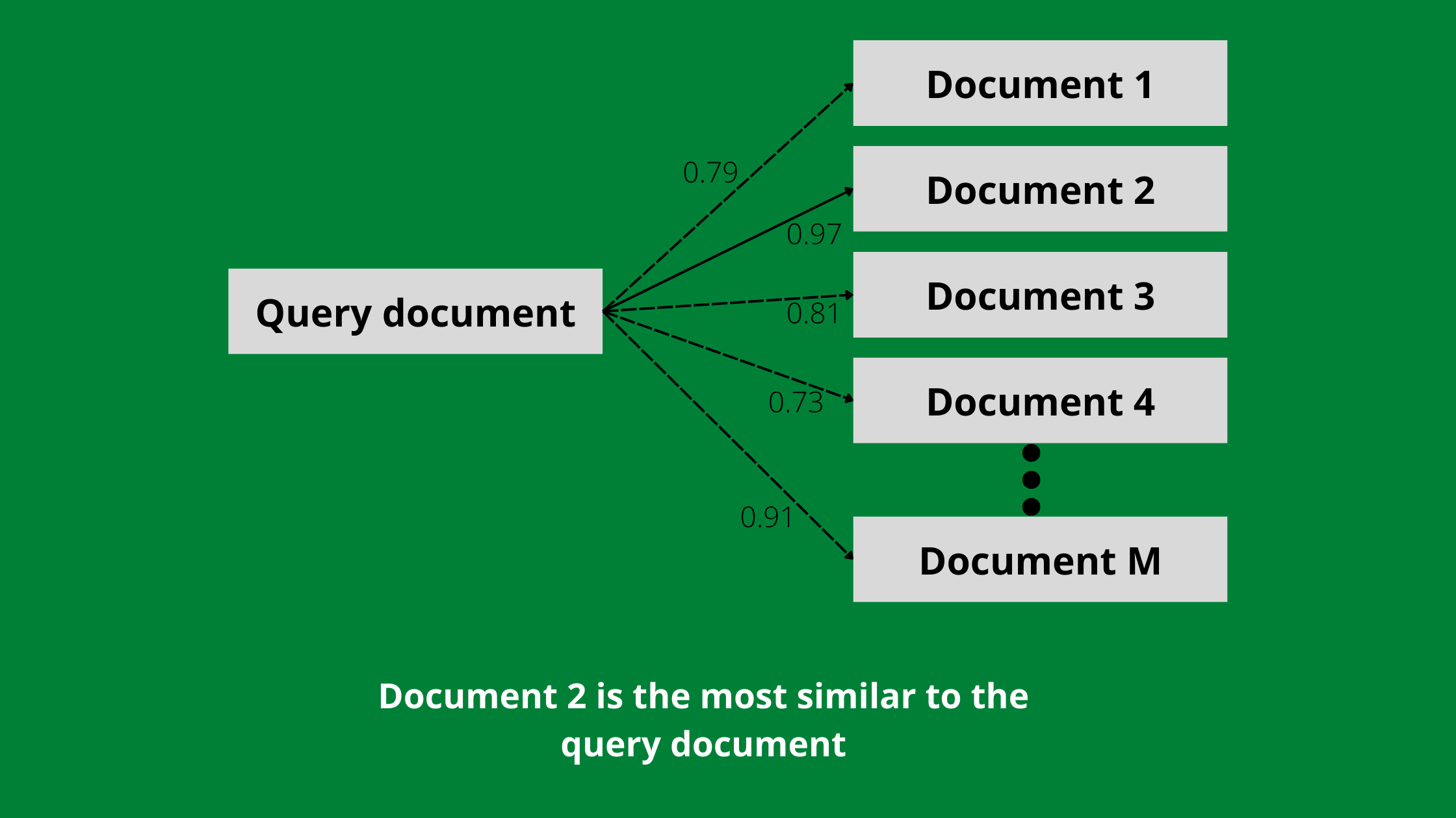 Consider a database of M documents, each having its vector. The task is to find the most (or k most) similar document for a query document (having its vector) from this database, also referred to as nearest neighbour search.